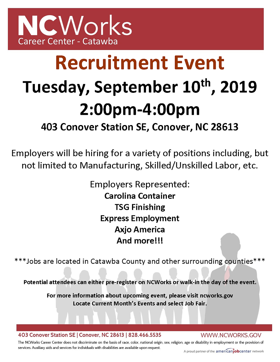 Multi-Employer Recruitment Event at NCWorks Career Center-Catawba | Sept. 10 | 2-4PMjasontoneyAug 15, 20190 min read